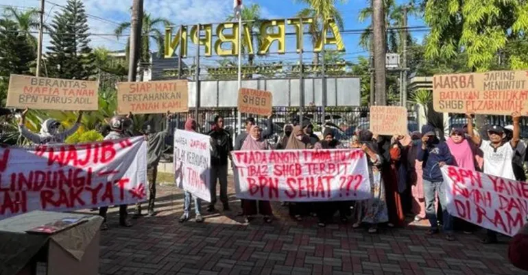 Mereka meminta keterbukaan informasi menyangkut subjek dan objek tanah yang tercantum dalam SHGB, serta dasar hukum penerbitannya.